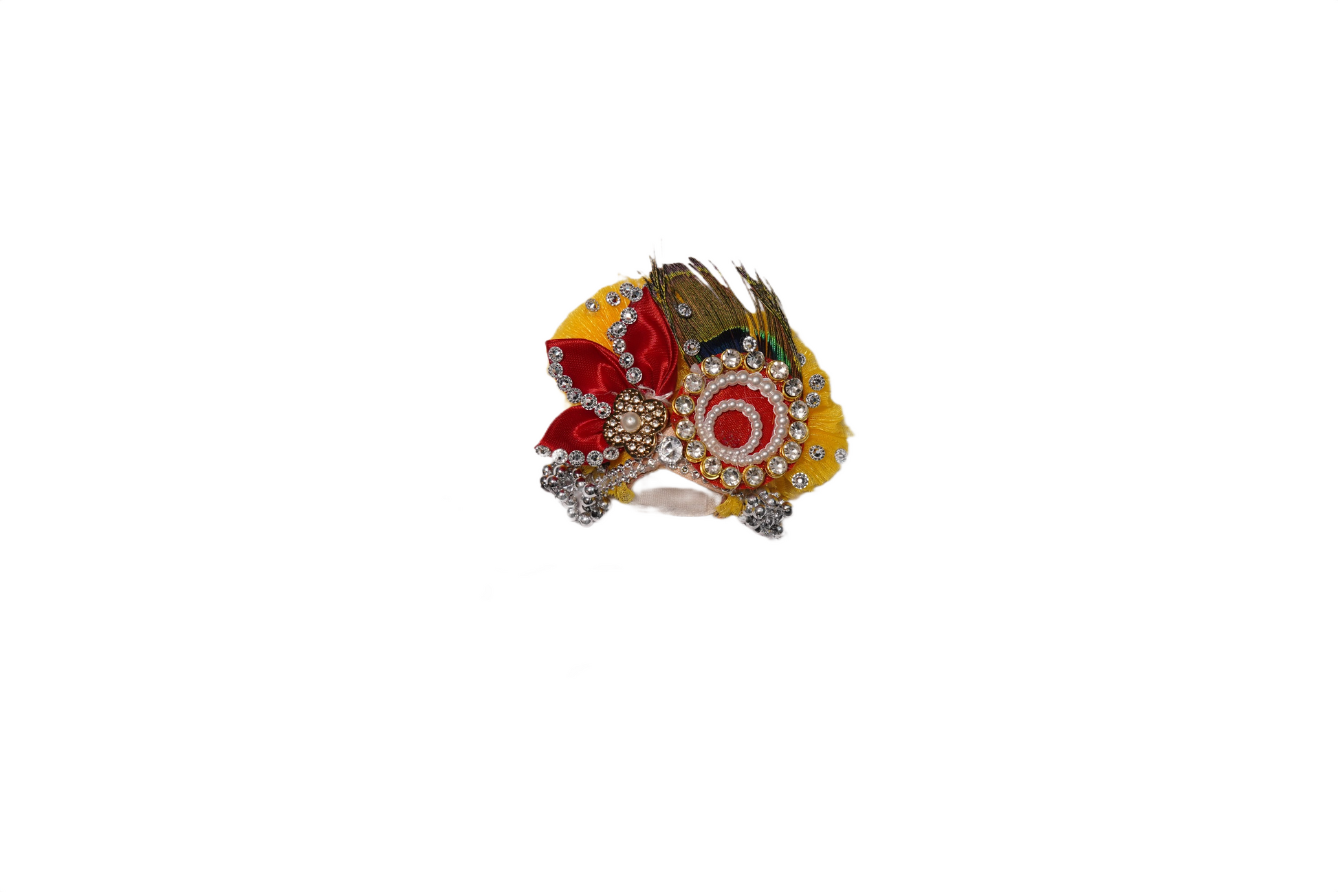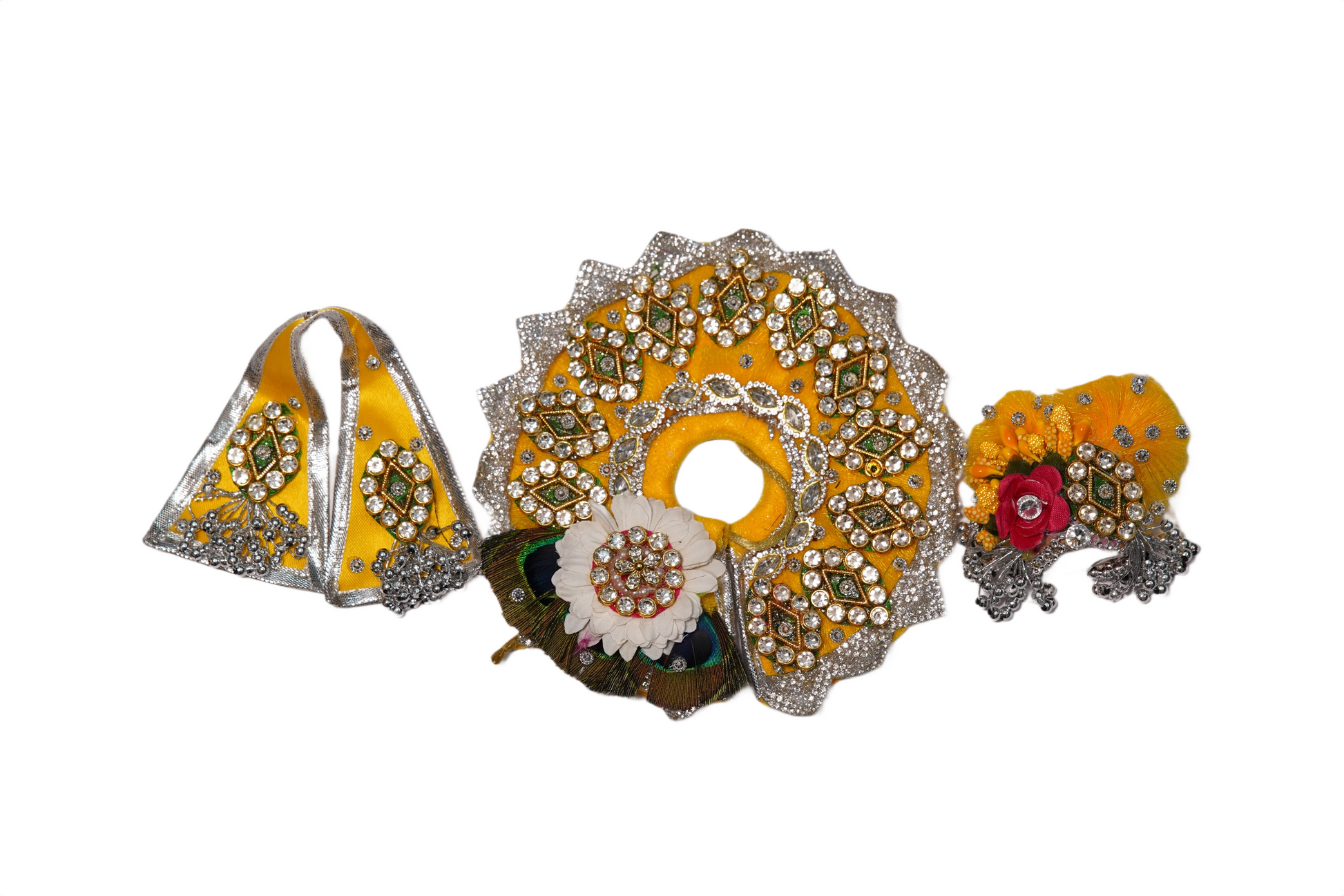 Divine Yellow Laddu Gopal Dress Set – Designer Stone Work Poshak with Peacock Mukut & Patka